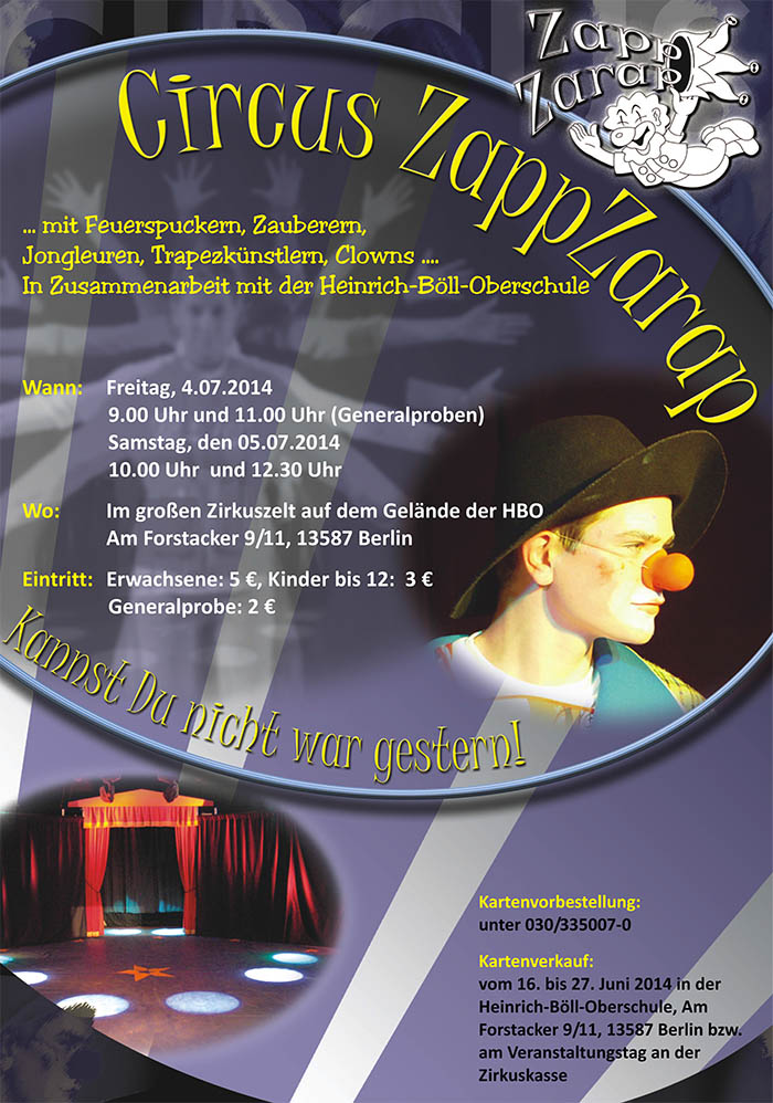 Ziel des Projektes ist es, die Jugendlichen spielerisch in die Welt des Circus einzuführen. In einem moderierten Workshopangebot lernen die Jugendlichen Circusgenres wie beispielsweise Jonglage, Bodenakrobatik, Balance- und Fakirtechniken kennen. Am Ende der Woche präsentieren die HBO-Artisten ihr Können in einer Abschlussshow.