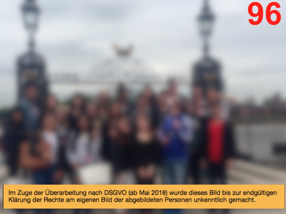 On Wednesday, we walked along the river Thames to Buckingham Palace to watch the soldiers march. Later, we went through Hyde Park to the museums. Fabio, Melanie, Christopher and me walked into the Science Museum and saw some fancy things there. After that, we were in a restaurant with our teachers.