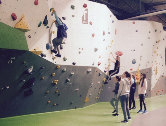 In der Boulderhalle „Cliffhanger“ lernten fast alle von uns das Bouldern, ein Sportart die in Deutschland von Wolfgang Fietz schon in den 1970er Jahren maßgeblich geprägt wurde, zum ersten Mal kennen. Ok, klettern kennen wir alle aus unseren Kindertagen, doch beim Anblick der künstlichen Felswände stellten wir als erstes die Frage nach einem Helm oder dem Sicherungsseil. Beides gibt es nicht, was dich oben hält ist der Wille, dein Mut, dein Vertrauen in dich selbst und dein Partner (beim Bouldern ‚Spotter‘ genannt), der dir eine Lösung zeigt, die du nicht siehst und dir bei einem Sturz Hilfestellung gibt damit du möglichst auf den Füßen landen kannst.