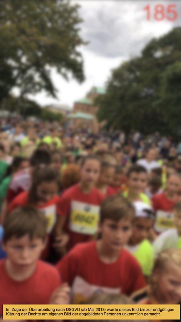 Inzwischen nun schon zum 5. Mal, waren 31 Schüler/innen der 11 Klasse ( E1 ) und der Oberstufe Helfer beim Start der Grundschulen. Es galt, die mehr als 6000 aufgeregten Teilnehmer zu bändigen und in 2 Blöcken zum Start zu führen.