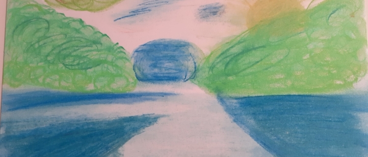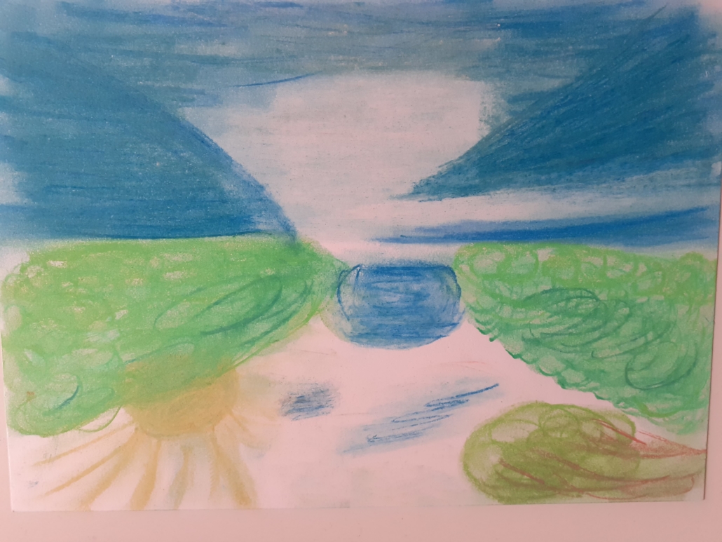 Zum Glück war gleich nach dem Ausstellungsrundgang noch genügend Zeit, um im Museum selbst zu Farbe und Papier zu greifen. In einem Workshop zauberten die Schüler*innen aus unterschiedlichem Papier und farbigen Pastellkreiden wunderschöne eigene Landschaftsbilder. Auch wenn wir dafür nicht nach draußen gingen, waren alle mit Feuereifer dabei!