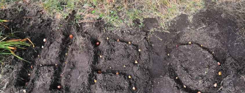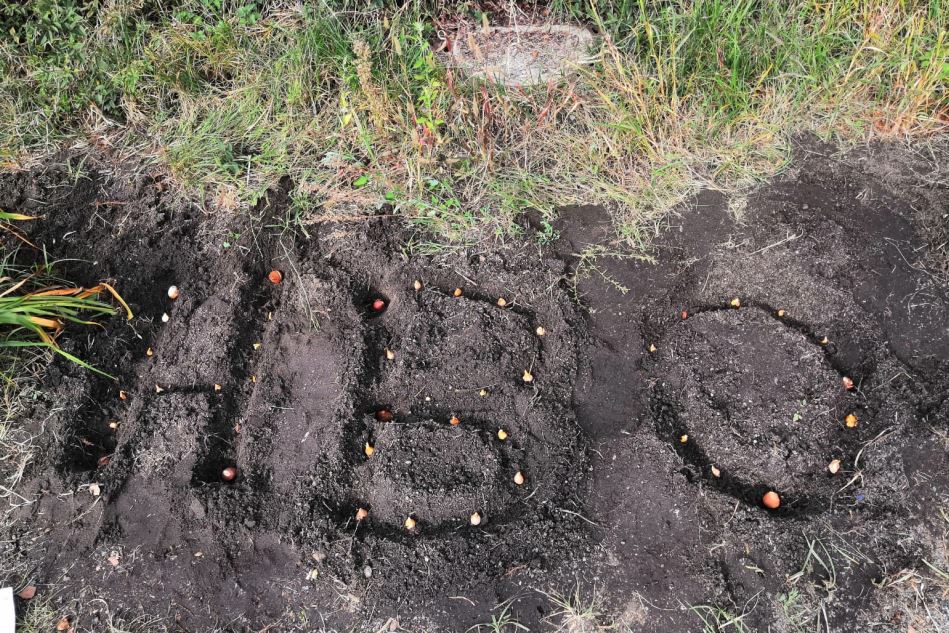 Voller Tatendrang machte sich der Schulgartenkurs in den letzten neun Wochen an die Arbeit: Wildkräuter wurden entfernt, Beete neu abgesteckt, Gründünger wurde verteilt und sogar Grünkohl und Kohlrabi hat der Kurs noch in die Erde gebracht. Vor dem Verwaltungsgebäude und im Schulgarten wurden mit Tulpenzwiebeln Muster für das nächste Frühjahr gesteckt. Das wildwuchernde Himbeerbeet hat wieder Struktur und ein Rankgitter bekommen.