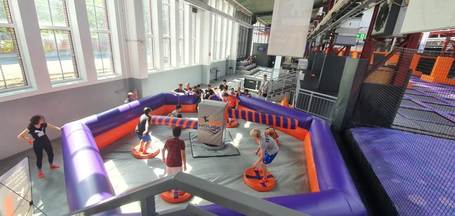 Während andere Klassen draußen wandernd und kletternd ihren Wandertag verbrachten, sprang gemeinschaftlich die Klasse Gelb 1 im Jump House.