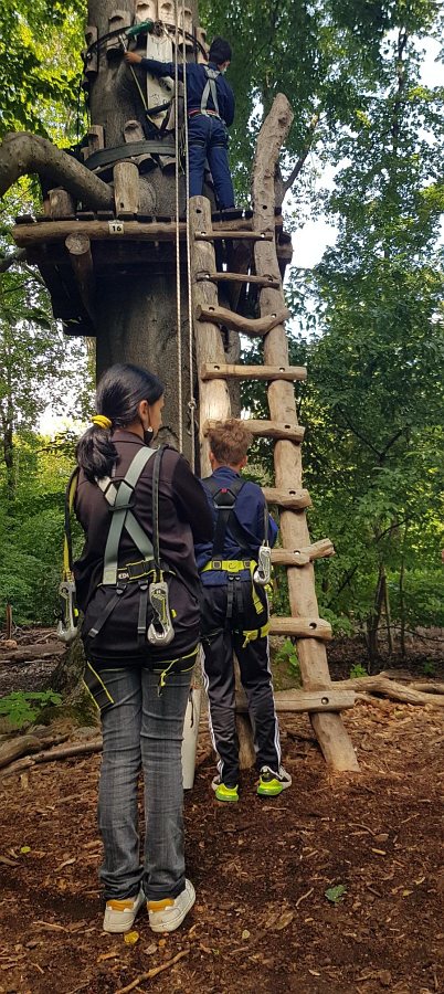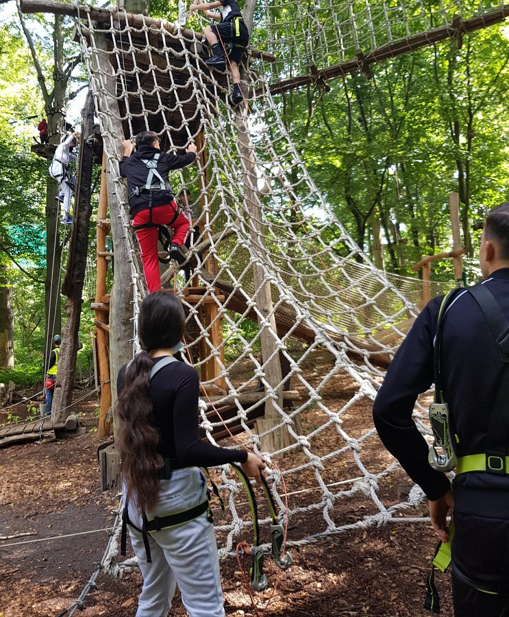 Die drei Klassen Orange 1, 3 und 4 waren im Kletterpark. Die Schüler*innen konnten sich sportlich betätigen, sich Herausforderungen und Höhenängsten stellen. Auch die sozialen Kontakte wurden in der Höhe gestärkt, da die Schüler*innen sich gegenseitig unterstützt, geholfen und motiviert haben.