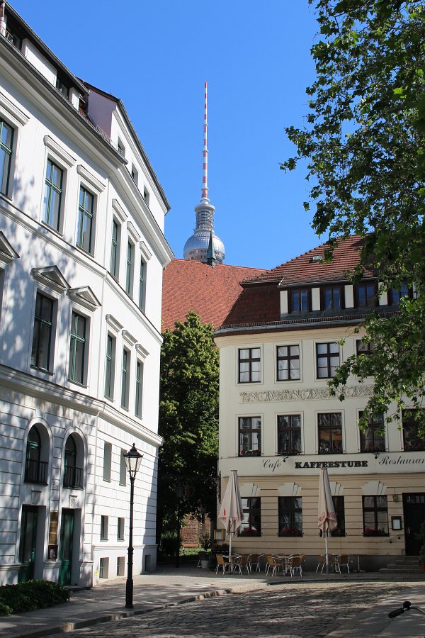 Auf Kontraste aller Art stießen wir bei unserem interessanten Stadtspaziergang tatsächlich auf Schritt und Tritt: Das beschauliche Nikolaiviertel, das mit seinen gepflasterten engen Straßen und seinem fast dörflichen Charakter den Lärm der Großstadt für einen Moment lang vergessen lässt, liegt nur einen Steinwurf vom Getümmel rund um den Alex entfernt.