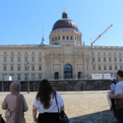 Ganz aktuell und vor allem zukunftsweisend ist auch das „House of One“, vor dessen Baustelle wir kurz Halt machten. Vorerst wartet das architektonisch herausfordernde Gebäude noch auf seine Vollendung. Künftig wird es als erstes und einziges Bauwerk weltweit mit einer Kirche, einer Synagoge und einer Moschee die drei großen Weltreligionen Christentum, Judentum und Islam unter einem Dach vereinen!