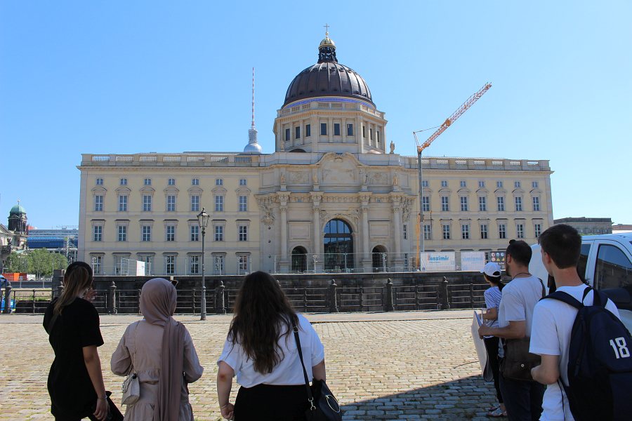 Ganz aktuell und vor allem zukunftsweisend ist auch das „House of One“, vor dessen Baustelle wir kurz Halt machten. Vorerst wartet das architektonisch herausfordernde Gebäude noch auf seine Vollendung. Künftig wird es als erstes und einziges Bauwerk weltweit mit einer Kirche, einer Synagoge und einer Moschee die drei großen Weltreligionen Christentum, Judentum und Islam unter einem Dach vereinen!