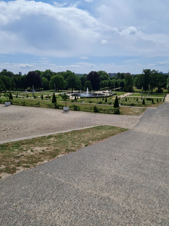 Nach einem kurzen Spaziergang durch den Park gelangten wir zur dritten und letzten Station: der großen Fontäne unterhalb des Schlosses Sanssouci. Hier haben die Schülerinnen und Schüler die Götter selbstständig wiedererkannt, die um die Fontäne angeordnet sind.