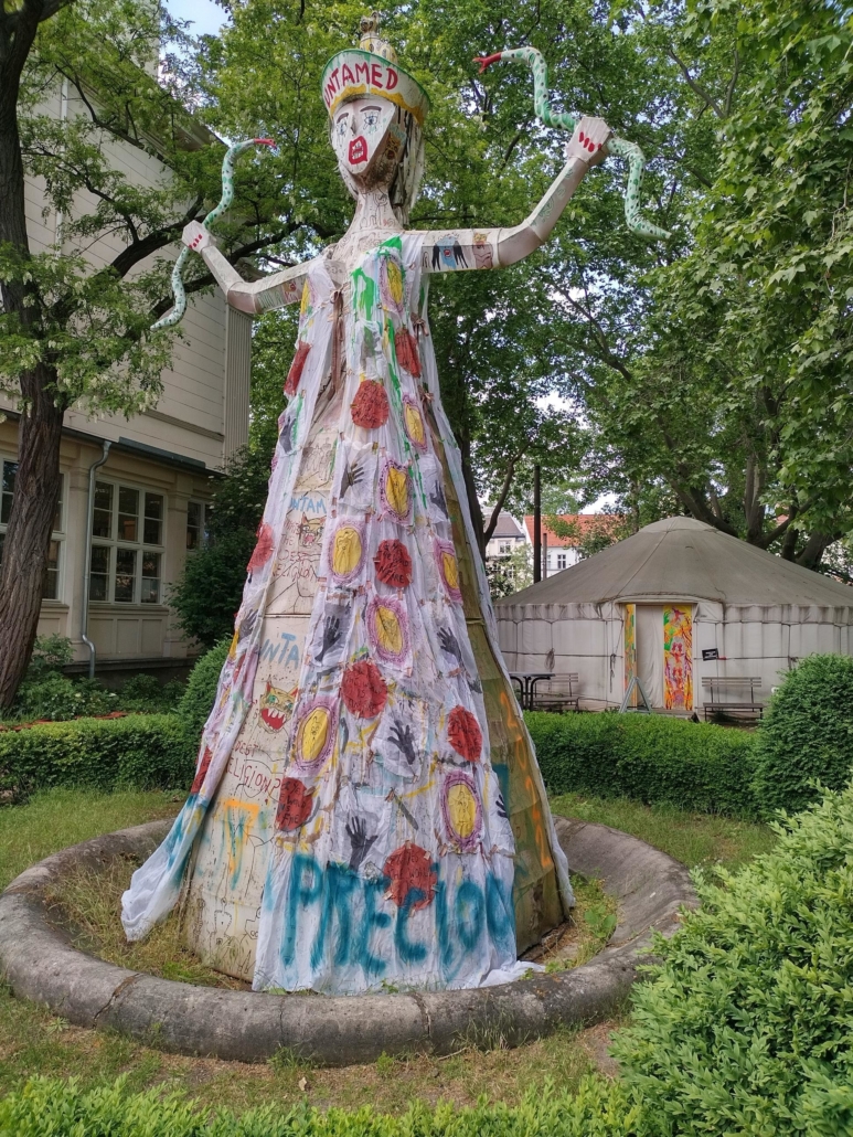 On Monday, 13th June 2022 the English advanced course (Q2) went on an excursion to the exhibition „Beware of Linguistic Engineering“ by the British artist Delaine Le Bas in „Gorki“ theatre with Ms. Wallin. With most students having both English and Arts as advanced courses, they enjoyed the slightly unusual art exhibition.