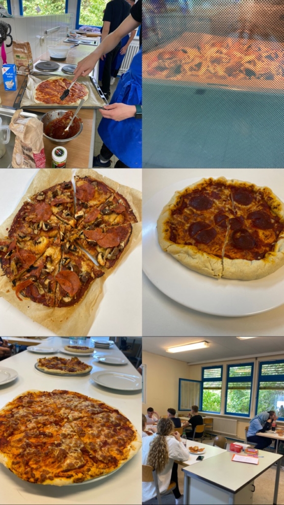 Die Schüler*innen haben selbstständig Rezepte ausgesucht und dafür eingekauft. Anschließend haben sie in der Lehrküche arabische Manaisch-Brote und italienische Pizza gebacken, türkische Köfte (Buletten) mit Reis gekocht, türkische Zigarren-Börek gebraten und zuletzt wie in der japanischen Küche Sushi zubereitet. Und natürlich wurden die köstlichen Ergebnisse dann gemeinsam verzehrt.