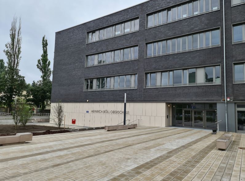 Vertreter*innen der Senatsverwaltung, des Bezirksamtes Spandau und der Schule konnten sich bei der Begehung von der Einzigartigkeit dieses neuen Schulgebäudes überzeugen. Insbesondere beeindruckte das imposante Foyer, die eindrucksvolle Aula/Mensa, die moderne Ausstattung der Fachräume, die hellen Klassenräume mit zeitgemäßen Smartboards sowie die durchdachte Schulhofplanung, die den Bedürfnissen und Interessen der Schülerinnen und Schüler vollends entspricht.