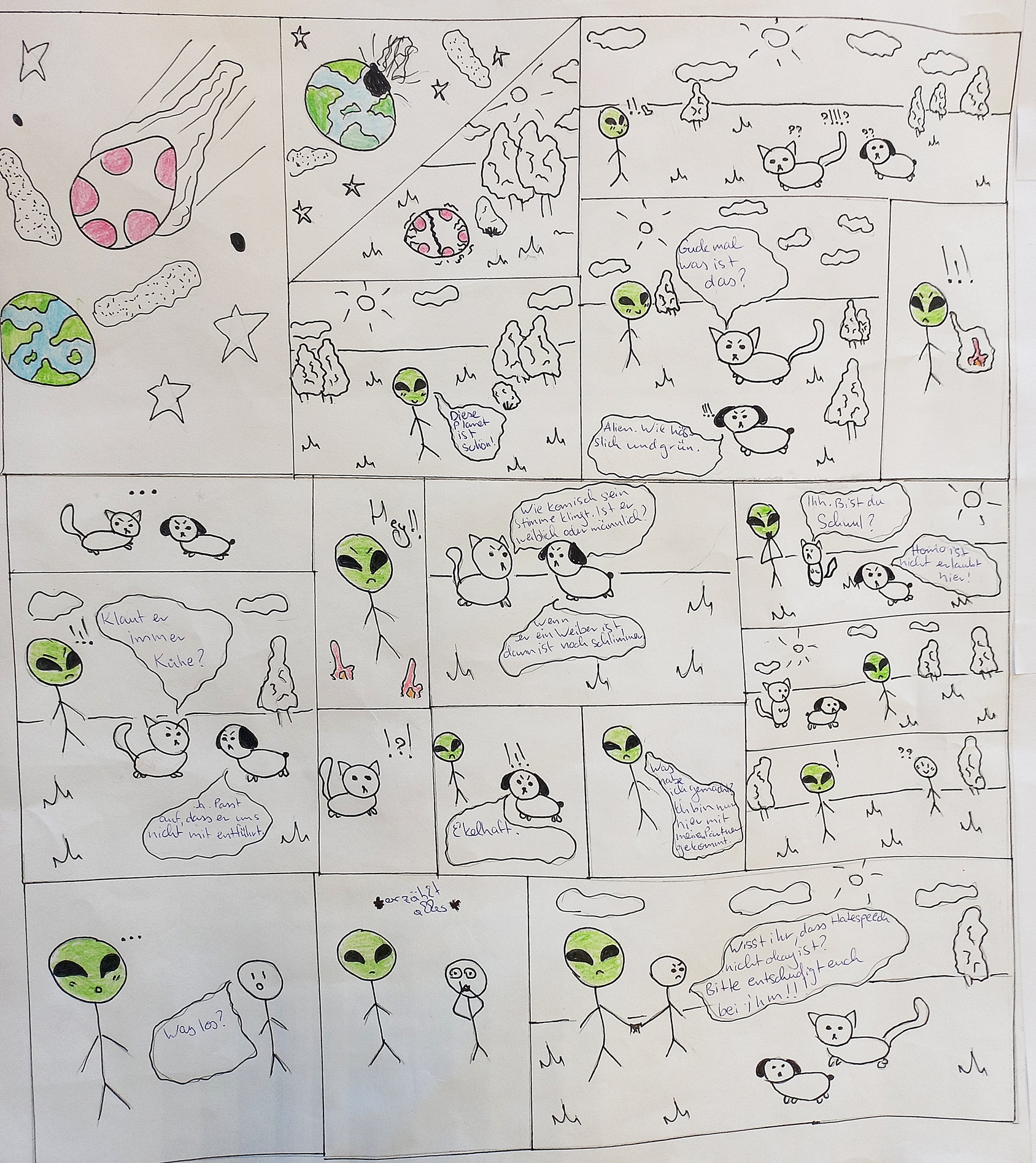 Mitte September nahmen fünf Teams der Mittelstufe und unser 11. Jahrgang am Projekt „HateLess“ der Uni Potsdam teil. Fünf Tage lang haben sich die Klassen mit dem Thema Hatespeech beschäftigt. Das Ziel war es, die Jugendlichen in Bezug auf dieses Thema zu sensibilisieren, ihnen zu zeigen, welche Personengruppen insbesondere von Hatespeech betroffen sind, wie man die Hassrede von “einfachen” Beleidigungen unterscheiden kann, um somit den Hasskommentaren vorzubeugen.
