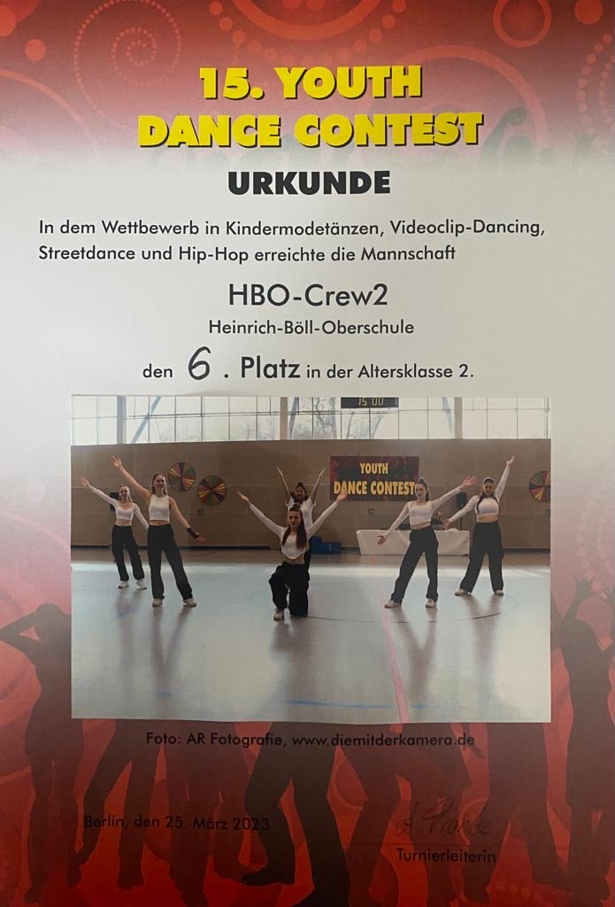 Die Schülerinnen der HBO vom Sportprofil Tanz haben am 25.03.2023 an dem 15. Youth Dance Contest in der Kategorie Hip-Hop erfolgreich teilgenommen.