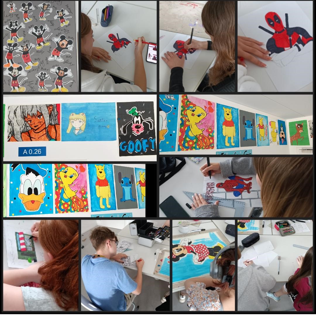Die Gruppe um Frau Woelki hat sich in der Woche der Herausforderung intensiv mit dem Thema „Comic“ beschäftigt. Zu Beginn standen theoretische Aspekte wie die Geschichte oder Bestandteile von Comics im Vordergrund. Dann ging es mit Buntstiften, Filzstiften, Wasser und Acrylfarben an die Gestaltung von eigenen Comicfiguren, Covern und ganzen Comics.