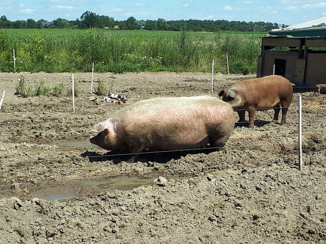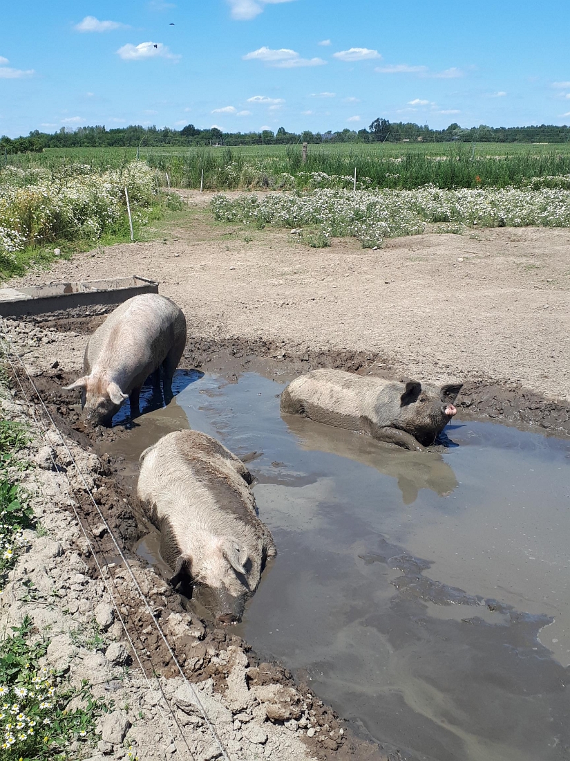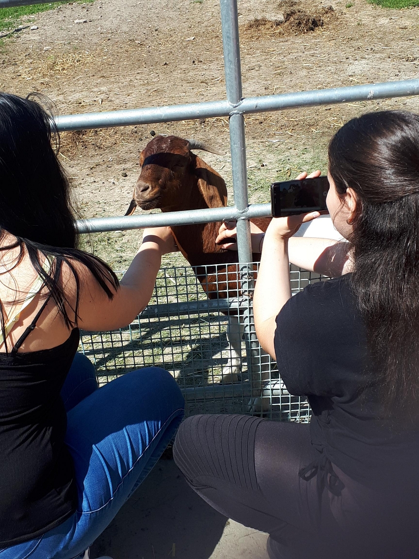 Wie lebt ein Huhn, wie ein Schwein? Welche Bedürfnisse haben sie? Und wie werden sie gehalten in der konventionellen und in der ökologischen Landwirtschaft? Um das herauszufinden, haben wir im Angebot „Gut zu Tieren – Gut für Tiere“ Steckbriefe zu den Tieren geschrieben, Filme geguckt, einem Experten für Agrarwirtschaft in einer Zoom-Konferenz ganz viele Fragen gestellt und ausführliche Antworten bekommen und – Highlight! – zwei Mal den Bauernhof „Peters Landwirtschaft“ besucht. Bauer Hans hält Zuchtkühe, Schweine, Gänse und Hühner, und Ziegen gibt es auf dem Hof auch. Wir haben mit ihm die Kühe auf eine andere Weide getrieben, sind mit dem Trecker zum Heuwenden gefahren, haben einen neuen Zaun für das Hühnermobil gezogen und haben die Tiere beobachtet, gestreichelt und gefüttert. Und ganz nebenbei haben wir Getreidesorten und Heu von Stroh unterscheiden gelernt. Die Fotos zeigen Eindrücke von unserem zweiten Bauernhofbesuch.