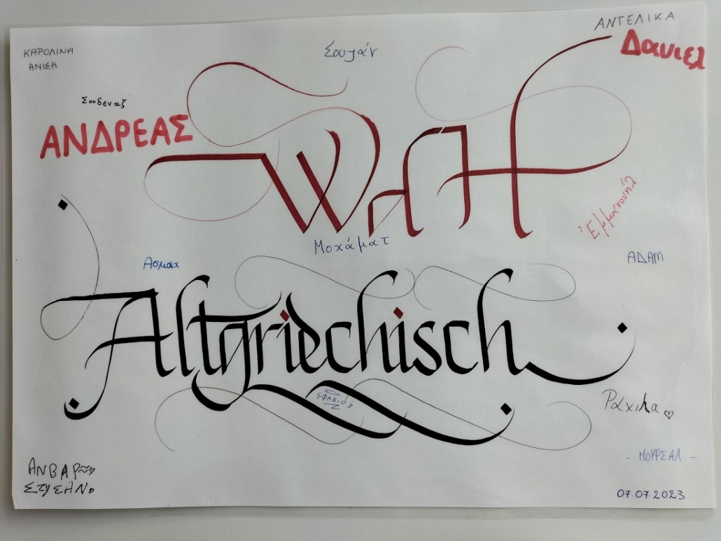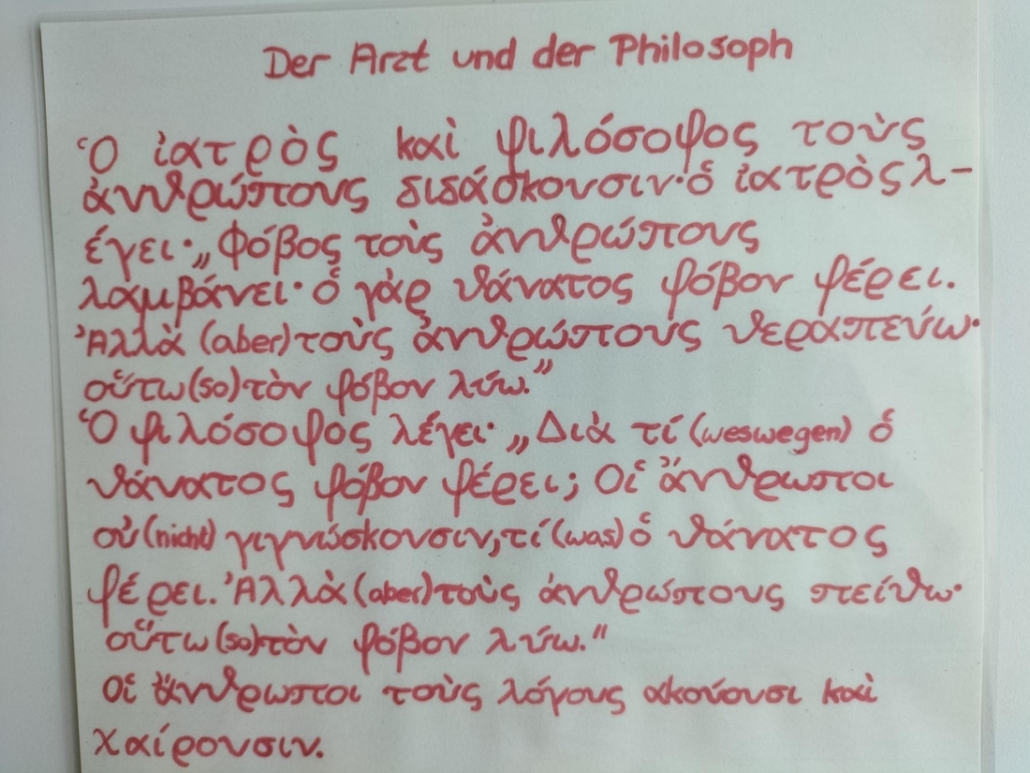 Die Schüler*innen gaben sich große Mühe, die griechischen Buchstaben zu lernen. Anschließend haben wir gemeinsam versucht, erste Texte auf Altgriechisch zu lesen und zu übersetzen.