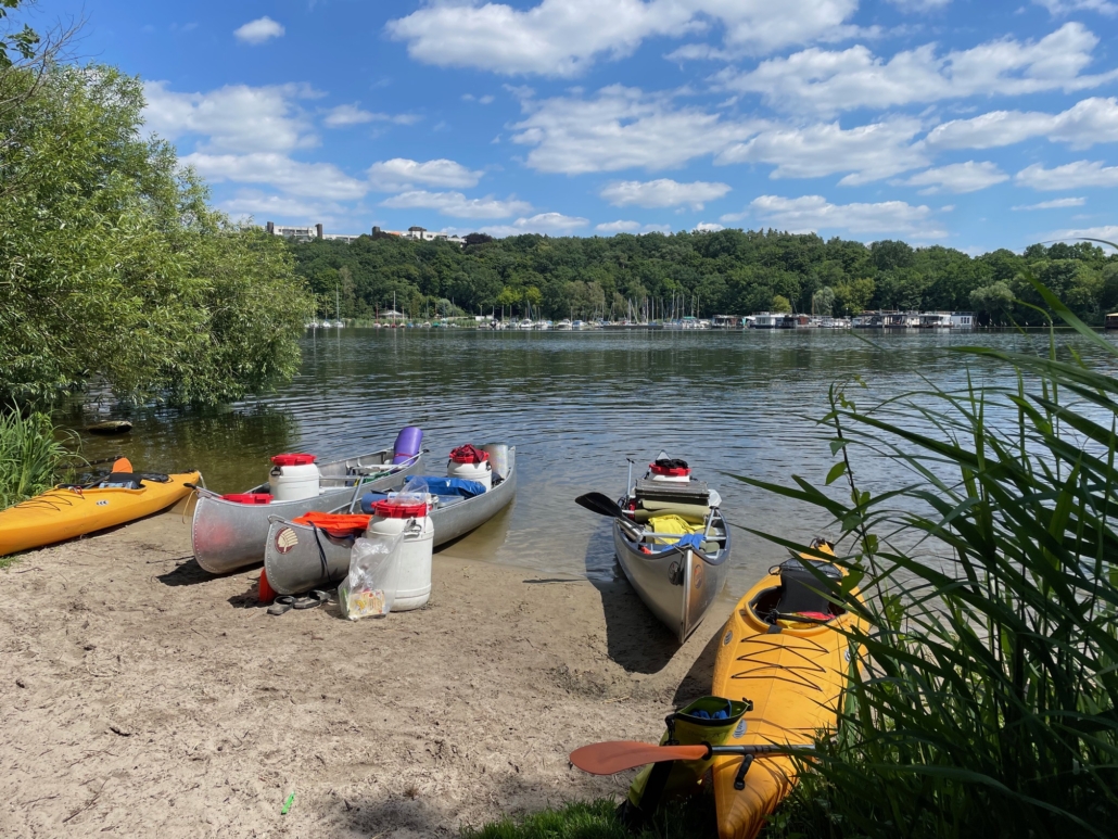 Schwer herausfordernd wurde der dritte Tag mit der Überquerung des Wannsees bei ordentlichem Gegenwind. Insgesamt waren 16 km auf dem Wasser zu bewältigen, zum Glück ohne das ganze Gepäck. Trotzdem: Ganz schön weit…