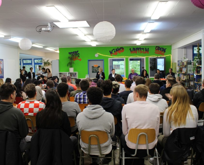 Noch Fragen? – Auch interessierte Schüler aus dem Publikum konnten in einer offenen Runde Fragen an die Kandidaten richten