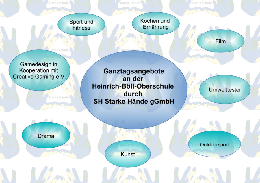 Seit dem Schuljahr 2013/14 ist die SH Starke Hände gGmbH – vormals Zwei Ebenen gGmbH – für die Umsetzung der externen Ganztagsangebote an der Heinrich-Böll-Oberschule verantwortlich.